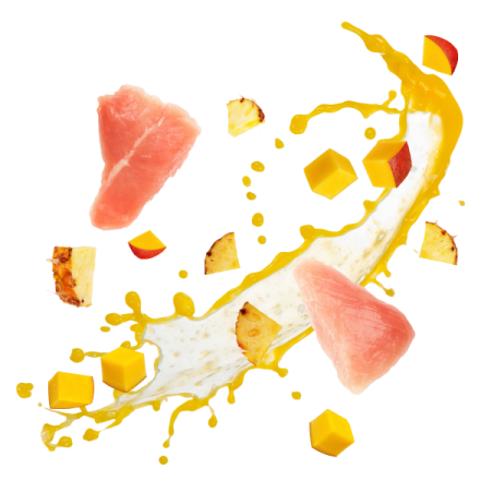 Flakes with turkey & tropical fruits in creamy sauce